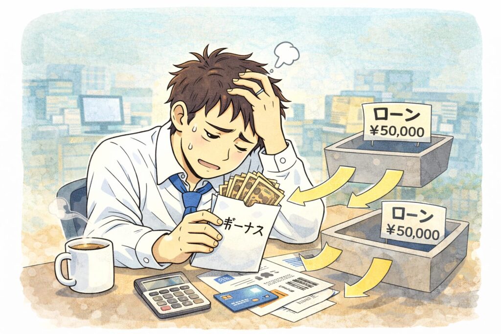 ボーナスは本来うれしいはずのものじゃけど、社畜にとっては生活の補填や支払いに消えていくことが多い。
