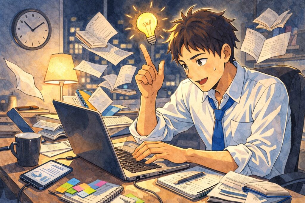 SNS見て、動画見て、ニュース見て、どうでもええおすすめ流れてきて、気づけば時間が消える。