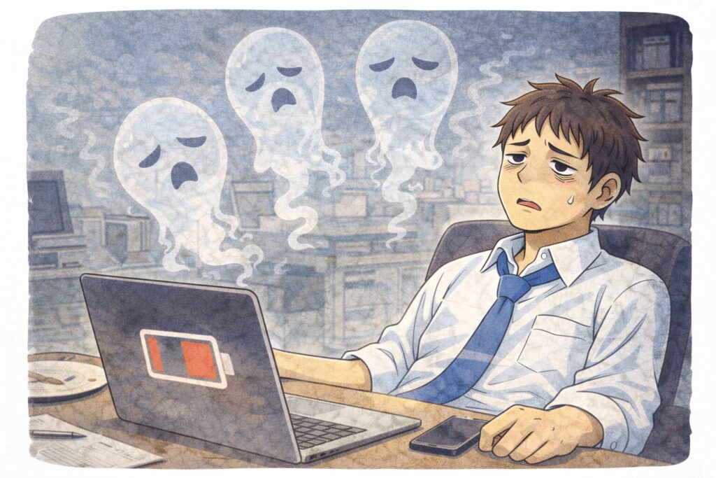これは社畜あるあるで、やる気がないというより、もう一日の戦いで残HPがなくなっちょるだけなんよね。