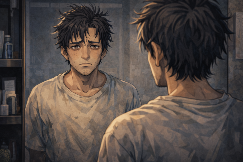 ある朝、なんとなく鏡見てみたんじゃ。そしたら自分の顔がまあ、冴えんこと冴えんこと。「これがワシなんか?」て思った。