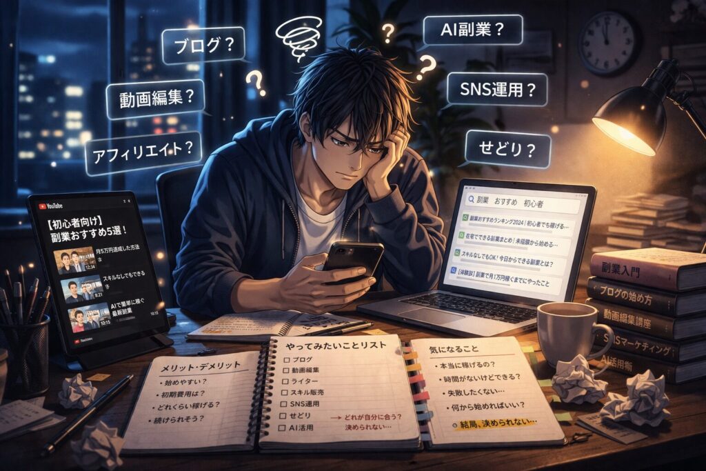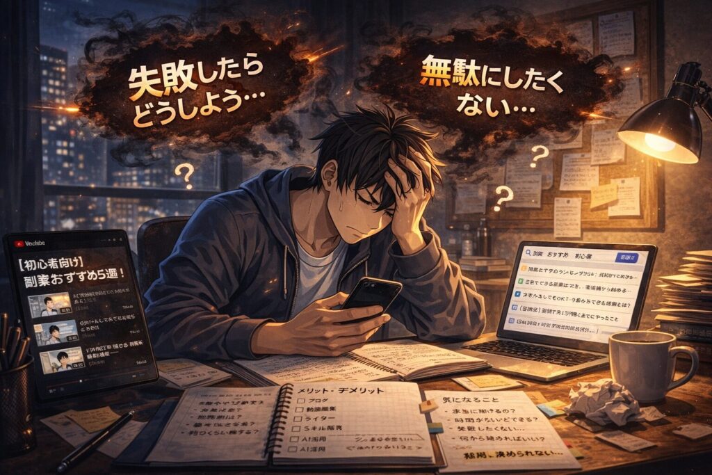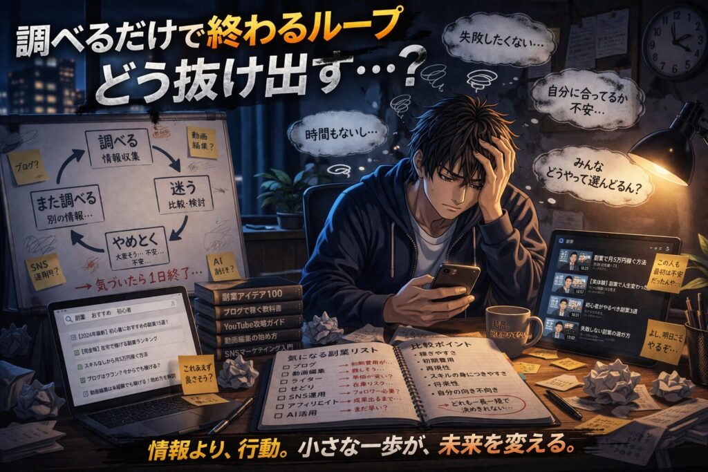 稼げる副業を探してるだけで一日終了、行動できない自分に今日も焦る