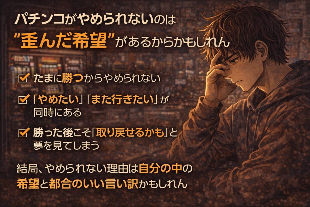 5. まとめ|パチンコがやめられないのは、弱いからじゃなく“希望の形が歪む”からかもしれん